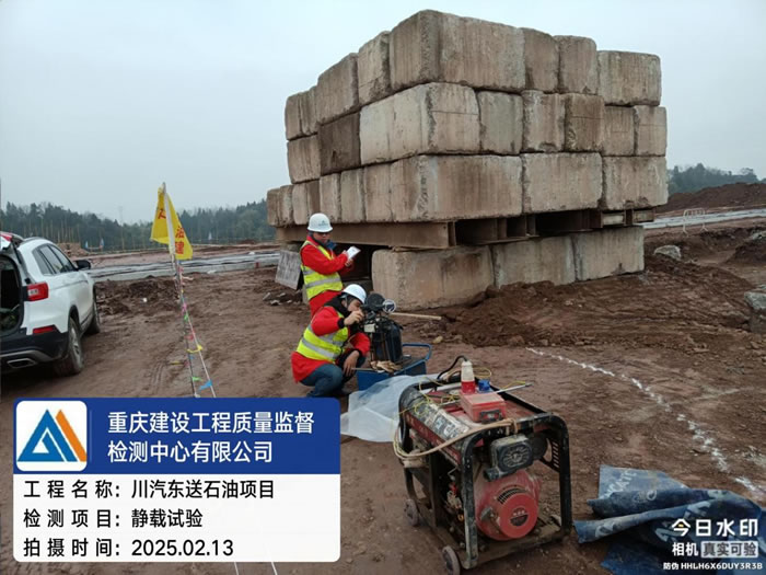 中心主要承担了川气东送二线铜梁压气站的土建施工部分的全部检测,包括单桩竖向抗压承载力、结构实体、场平回填压实度以及新站建设所需的建筑原材料检测等。通过高效统筹人员与设备资源,组建专业检测团队,依托科学严谨的检测技术和全过程质量管控,为铜梁压气站的顺利投产提供了关键的技术支撑与可靠的质量保障。